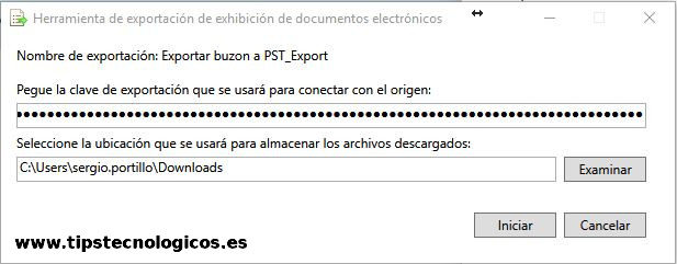 Por último en el primer campo pegaremos la clave de exportación que os indiqué que copiarais en los pasos anteriores y seleccionaremos la ruta donde queremos que se descargue la información.